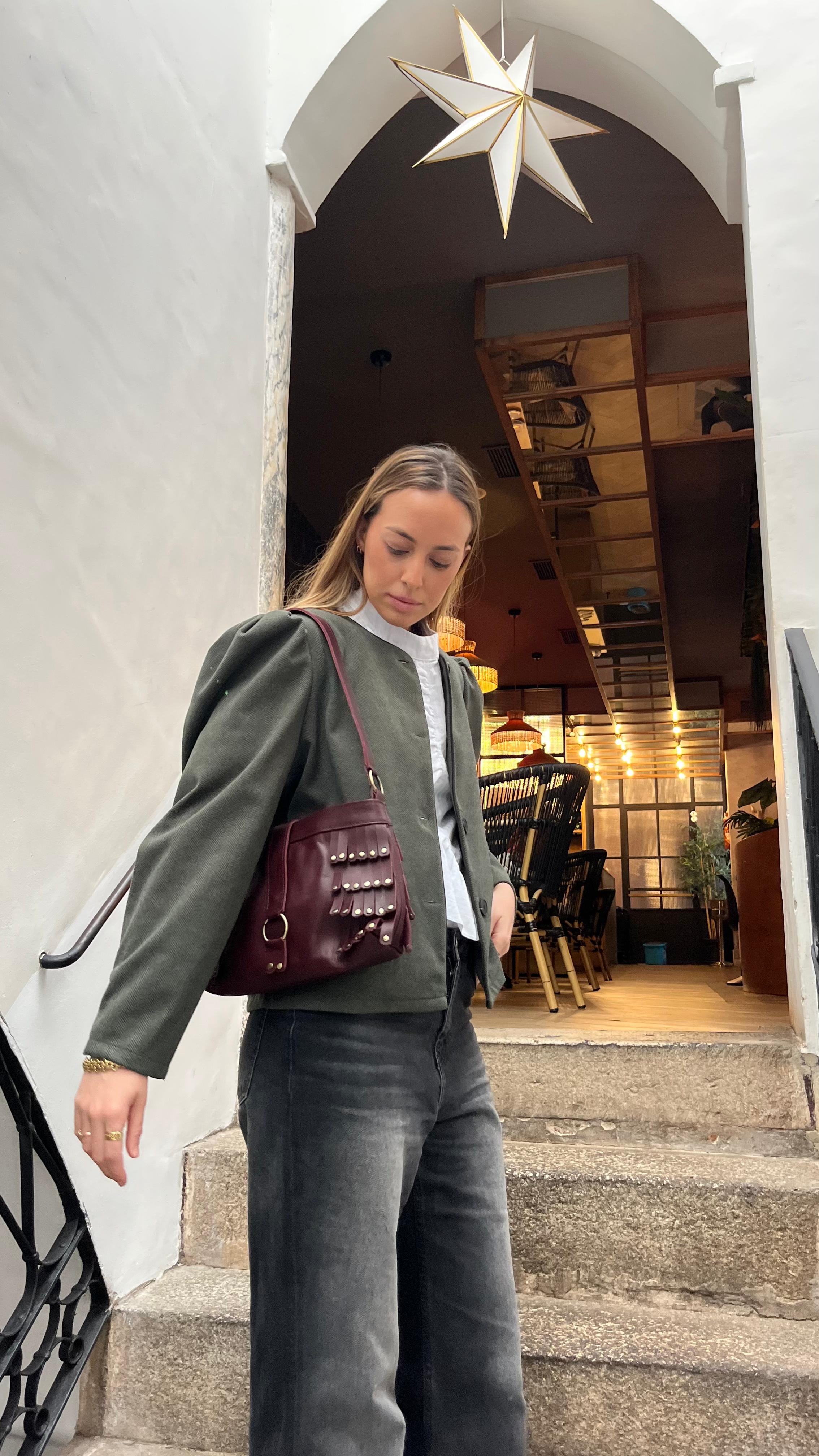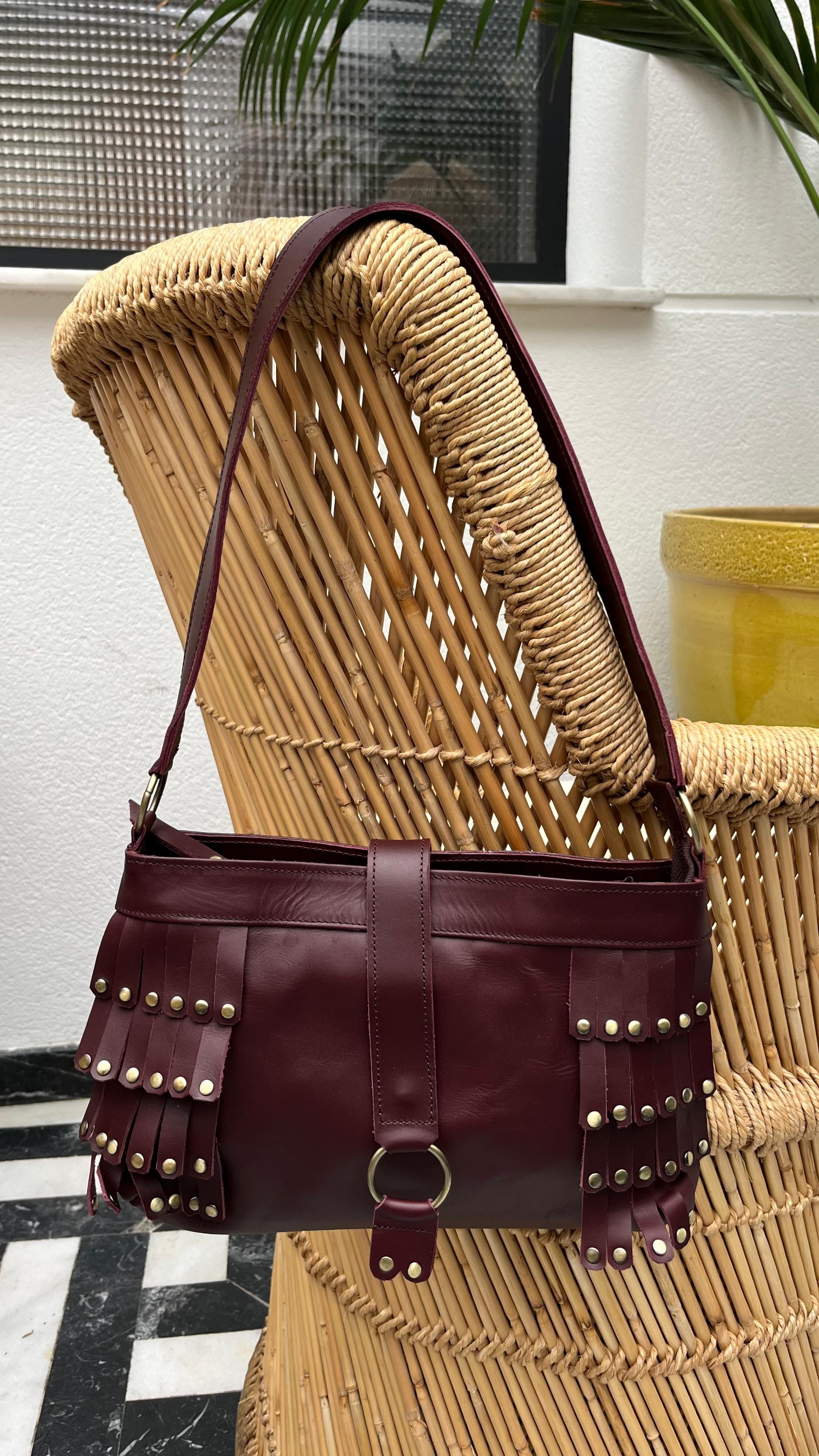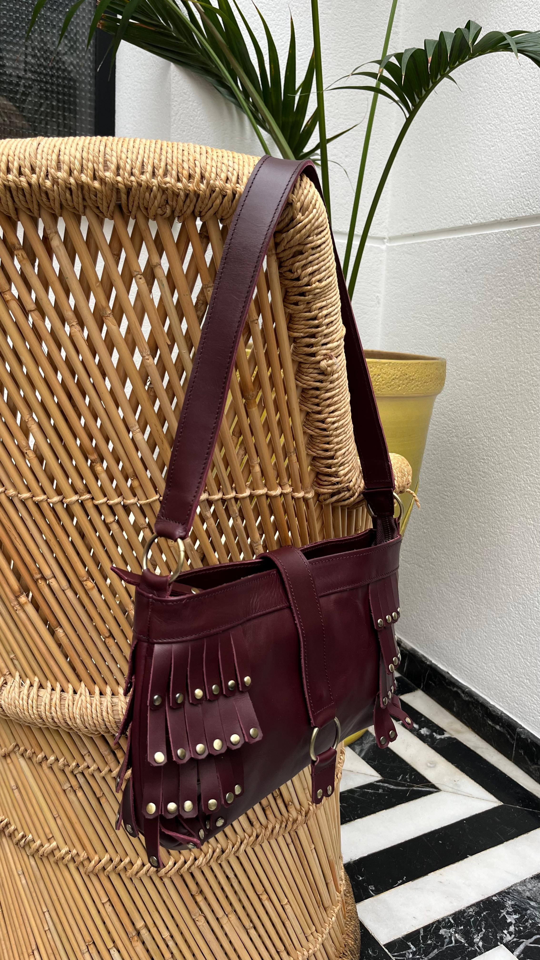 Bolso flecos con tachas piel